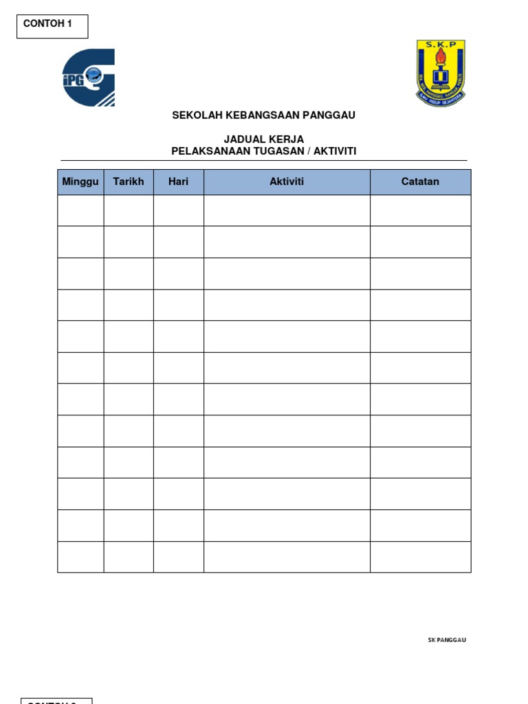 contoh jadual kerja geografi